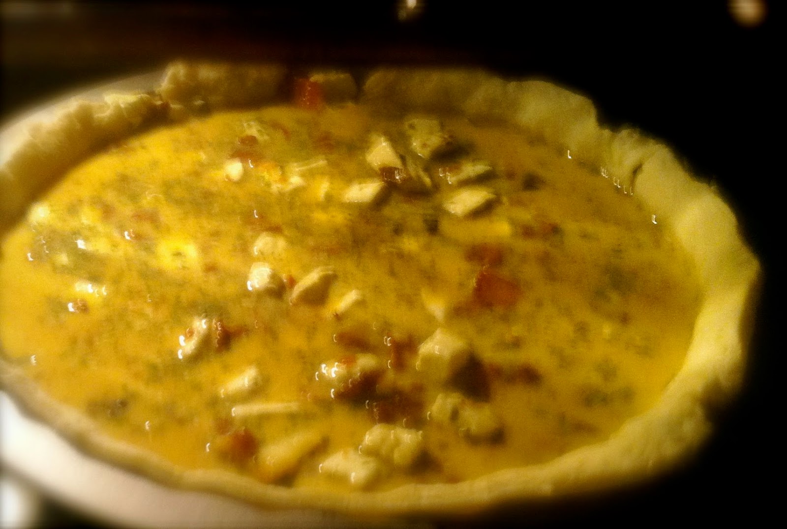 After mixing six eggs and a bit of milk in a dish, I put the whole thing into a tart shell.